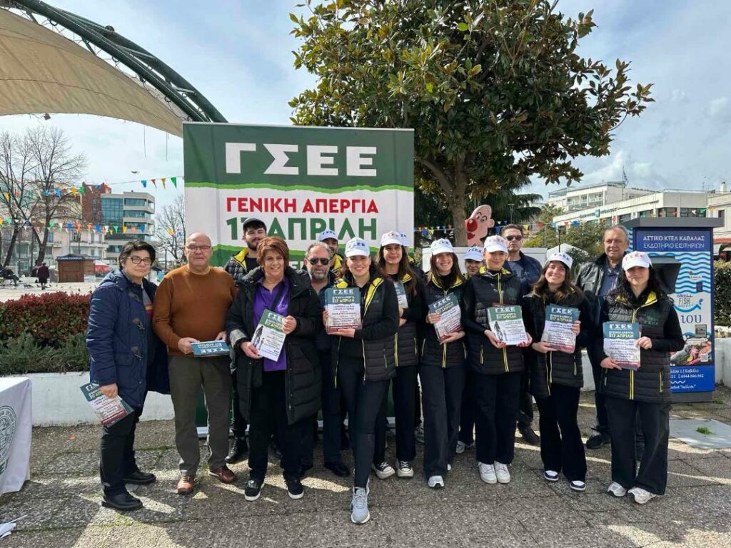 Το Εργατοϋπαλληλικό Κέντρο Ν. Καβάλας σε συνεργασία με κλιμάκιο της Γ.Σ.Ε.Ε που θα βρίσκεται στην πόλη της Καβάλας, οργανώνει ανοιχτή εκδήλωση – ομιλία για να ενημερώσει τους εργαζόμενους σχετικά με τα αιτήματα και τις διεκδικήσεις των συνδικάτων ώστε να συμμετέχουν στην Γενική Απεργία που προκήρυξε η ΓΣΕΕ για τις 17 Απριλίου 2024.